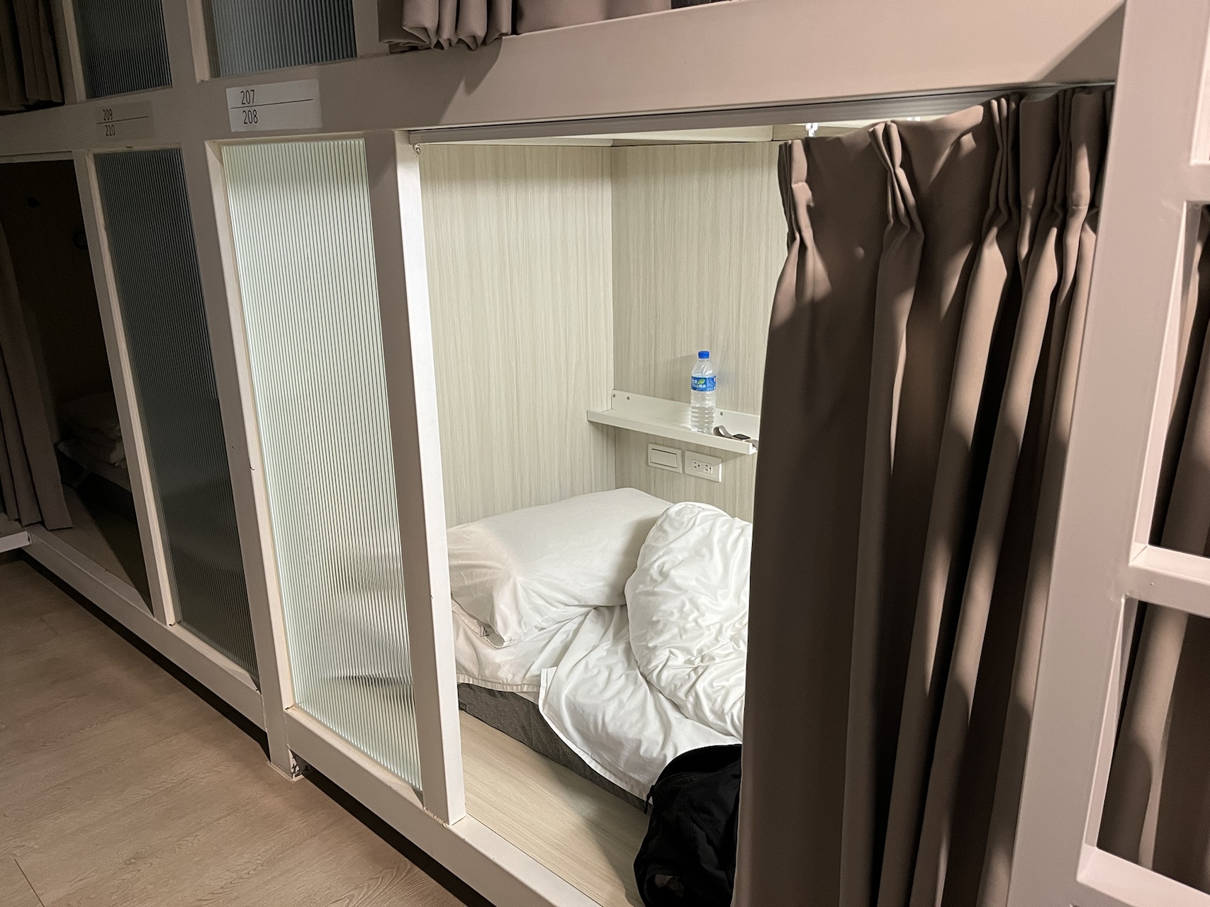 總共只有7個床位而已,當天入住含我們兩個人,總共三人而已。我是睡得蠻好的床位也很乾淨。