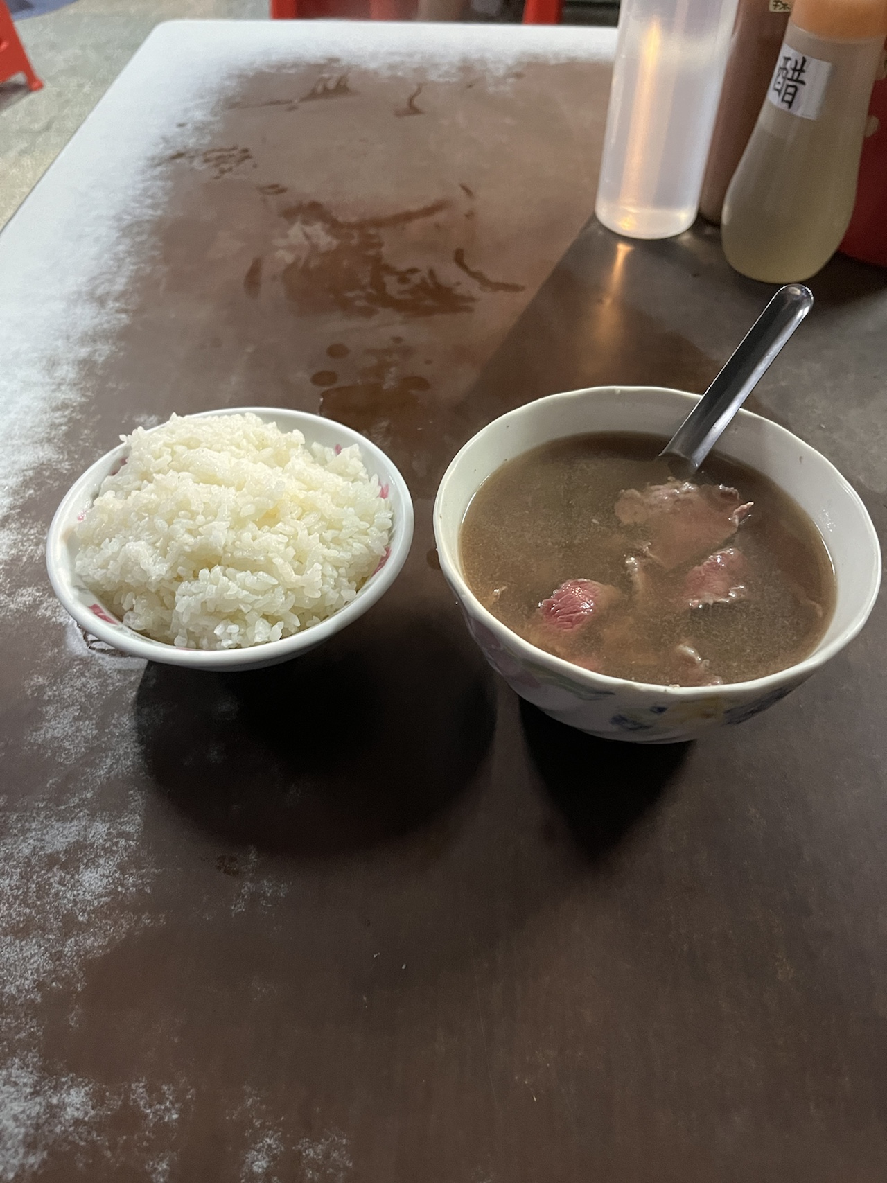 當天早上 4 點就起床了,起床稍微 review 了一下 code,發現有一些問題修到了 5 點多,錯過了西羅殿牛肉湯開門的時間,所以就挑了其他家牛肉湯去吃。